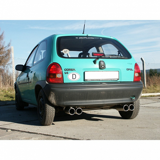 Fox Sportauspuff koncový tlumič výfuku s koncovkou 2x80 Typ 13 na obou stranách pro Opel Corsa B s motorem 1.2, 1.4, 1.5 TD, 1.6, průměr výf. vedení 60 mm