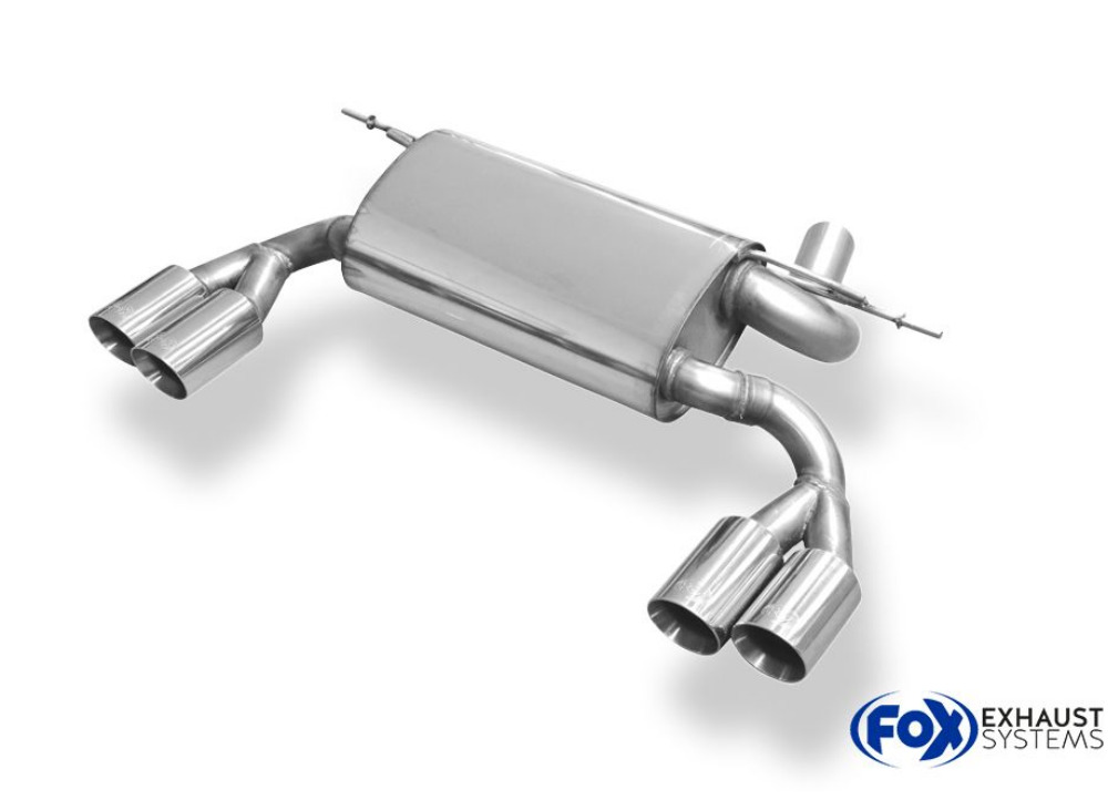 Koncový díl výfuku Fox Sportauspuff dodá vašemu vozu sytější sportovní zvuk a atraktivnější vzhled díky konstrukci z nerezové oceli s ozdobnou koncovkou nebo koncovkami výfuku (u některých vozů jsou využívány originální koncovky v zadním nárazníku).
