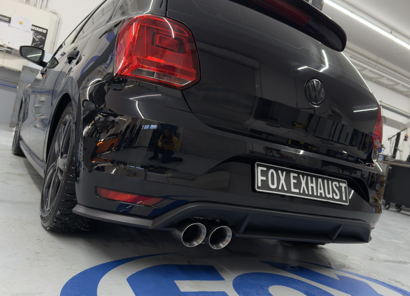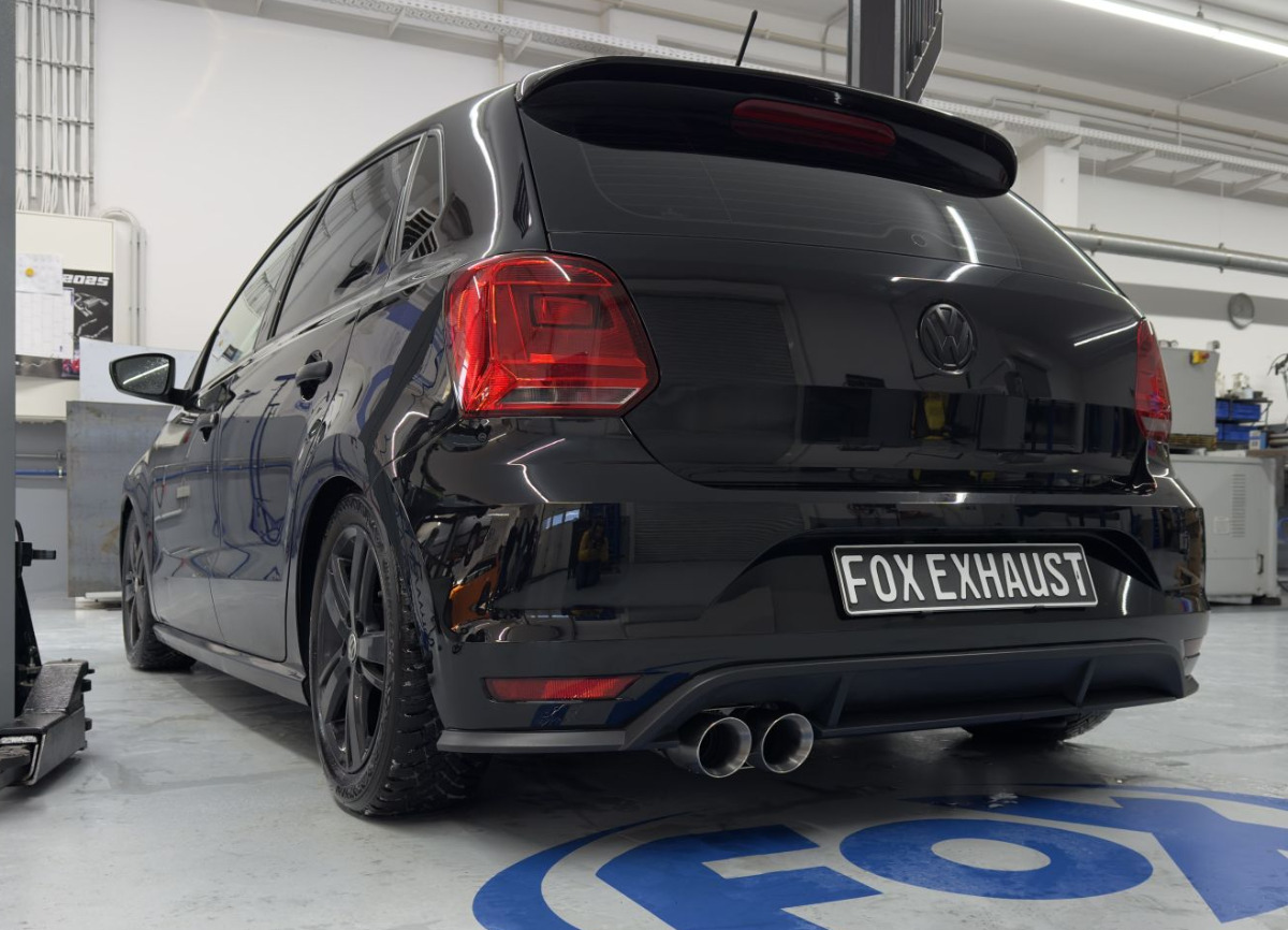Fox Sportauspuff koncový tlumič výfuku s koncovkou 2x90 Typ 25 pro Volkswagen Polo 6R 2009- s motorem 1.0, 1.2, 1.2 TDI, 1.4, 1.6 TDI