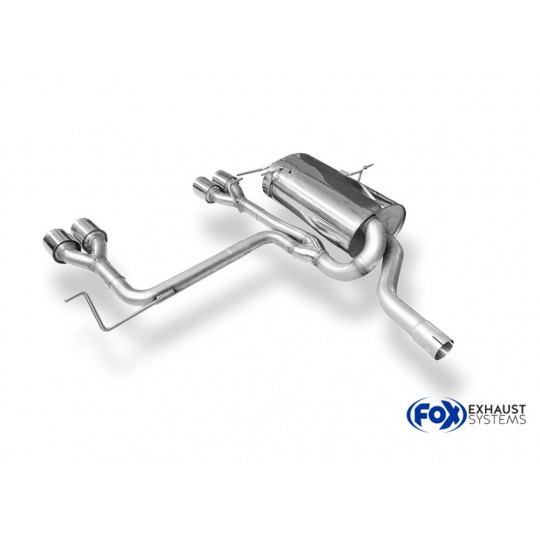 Fox Sportauspuff koncový tlumič výfuku s koncovkou 4x90mm Typ 14 uprostřed pro difuzor Rieger pro BMW řada 3 E46 s motorem 2.0, 2.5, 2.8