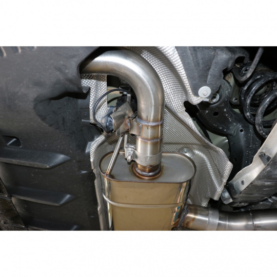 Fox Sportauspuff koncový tlumič výfuku s koncovkou vyvedeno do OEM koncovek pro Mercedes CLA 118 2019- s motorem 2.0