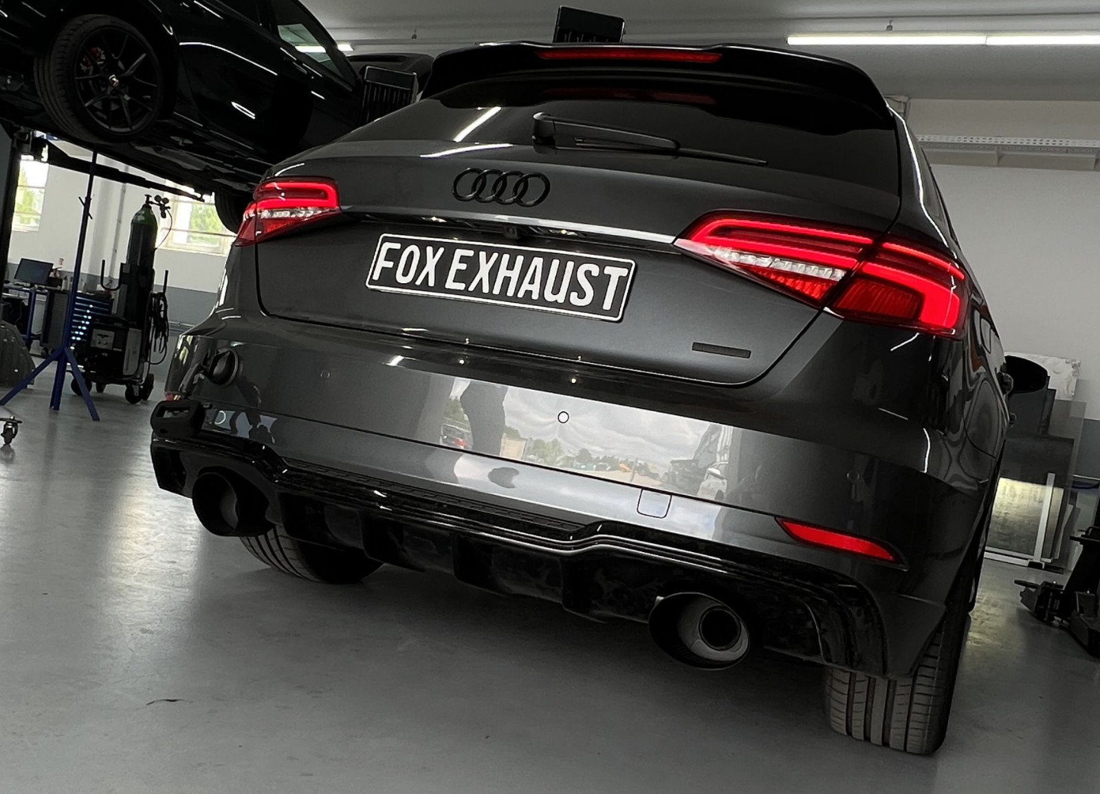 Všechny výfukové systémy Fox jsou 100% vyráběny v Německu. Koncovky koncových tlumičů jsou ručně leštěny do vysokého lesku (s výjimkou černě lakovaných koncovek nebo systémů zakončených do továrních koncovek vozu umístěných v zadním nárazníku).