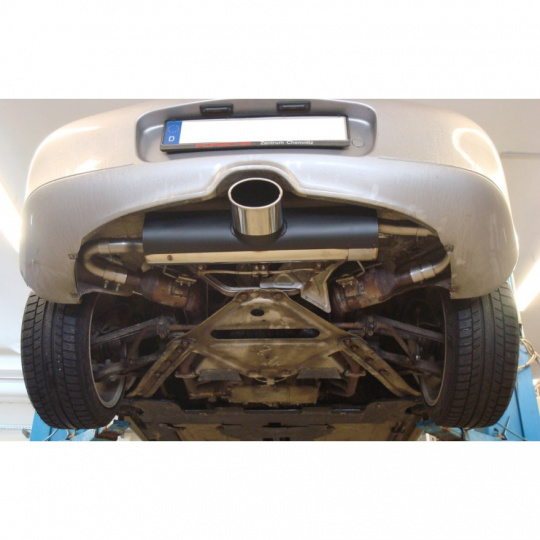 Fox Sportauspuff koncový tlumič výfuku s vývodem uprostřed s koncovkou 140x90 Typ 32 pro Porsche Boxster 986 1999- s motorem 2.7, 3.2