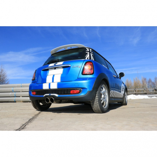 Fox Sportauspuff koncový tlumič výfuku s vývodem uprostřed s koncovkou 2x100 Typ 16 pro Mini Cooper S R56 2006- s motorem 1.6