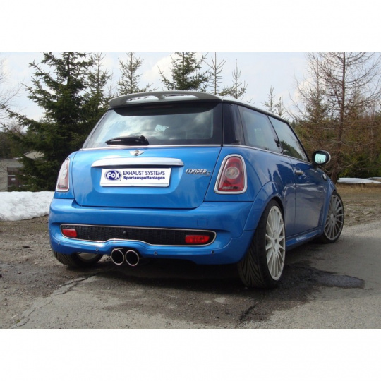 Fox Sportauspuff koncový tlumič výfuku s vývodem uprostřed s koncovkou 2x100 Typ 16 pro Mini Cooper S R56 2006- s motorem 1.6