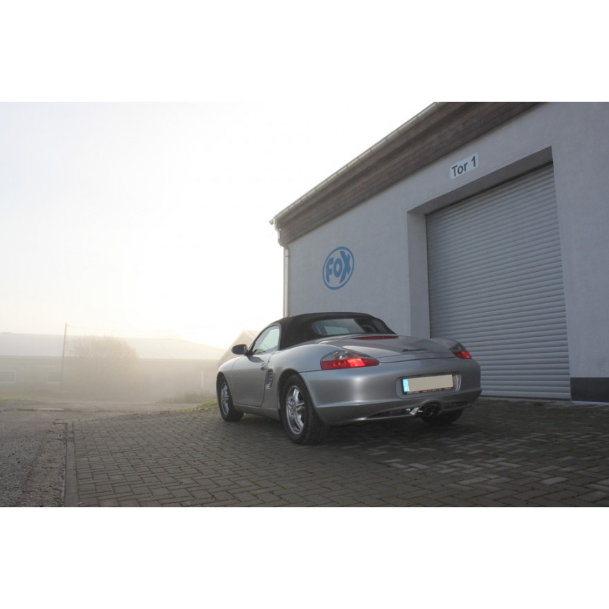 Fox Sportauspuff koncový tlumič výfuku s vývodem uprostřed s koncovkou 2x80 Typ 25 pro Porsche Boxster 986 1999- s motorem 2.7, 3.2
