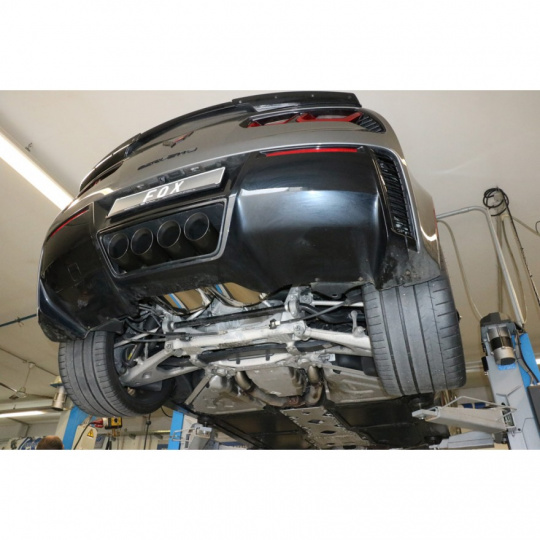 Fox Sportauspuff koncový tlumič výfuku s vývodem uprostřed s koncovkou 4x100 Typ 25 uprostřed (černé) pro Corvette Z06 s motorem 6.2