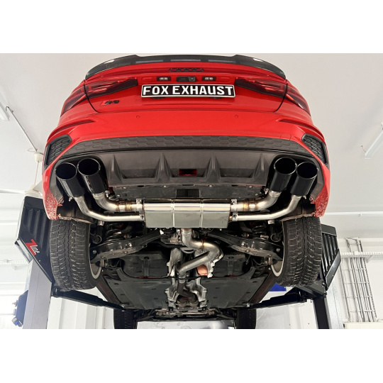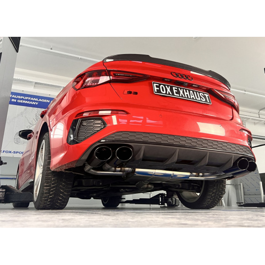 Fox Sportauspuff poloviční výfukový systém od katalyzátoru s výfukovými klapkami s koncovkou 2x115x85 typ 32 černá na obou stranách pro Audi S3 GY 2020- s motorem 2.0 l