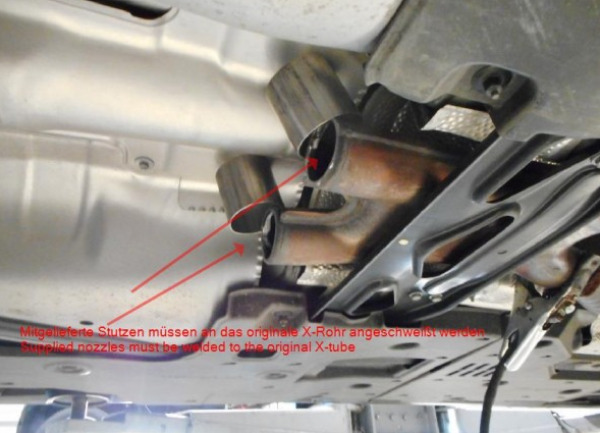 Přední díl výfuku Fox Sportauspuff nahrazuje originální díl a podporuje sportovní zvukový projev vozu.