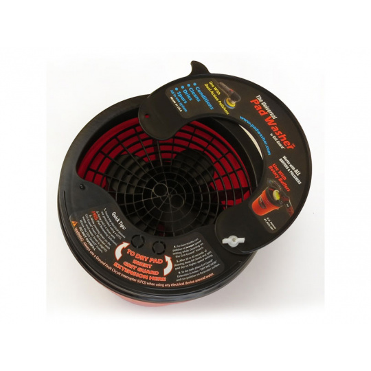 Pračka Grit Guard Universal Pad Washer nabízí jednoduchý způsob, jak vyčistit a obnovit lešticí kotouče a prodloužit jejich životnost. Bez nutnosti sundávat kotouč jej po leštění snadno a bez námahy připravíte pro další použití. Patentovaný mechanizmus unitř kbelíku je navržen tak, aby mytí kotouče co nejvíce ulehčil. Pružiny tvoří ideální protitlak, aby se kotouč vyčistil, ale nepoškodil. Universal Pad Washer lze použít také pro sušení kotoučů.