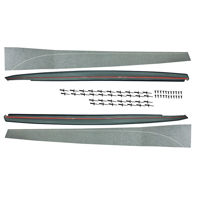 Perfektní zpracování, lakovatelný plast, jednoduchá montáž. Montážní příslušenství je součástí balení. Součástí balení jsou také černé samolepky na prahy ve stylu M Performance.