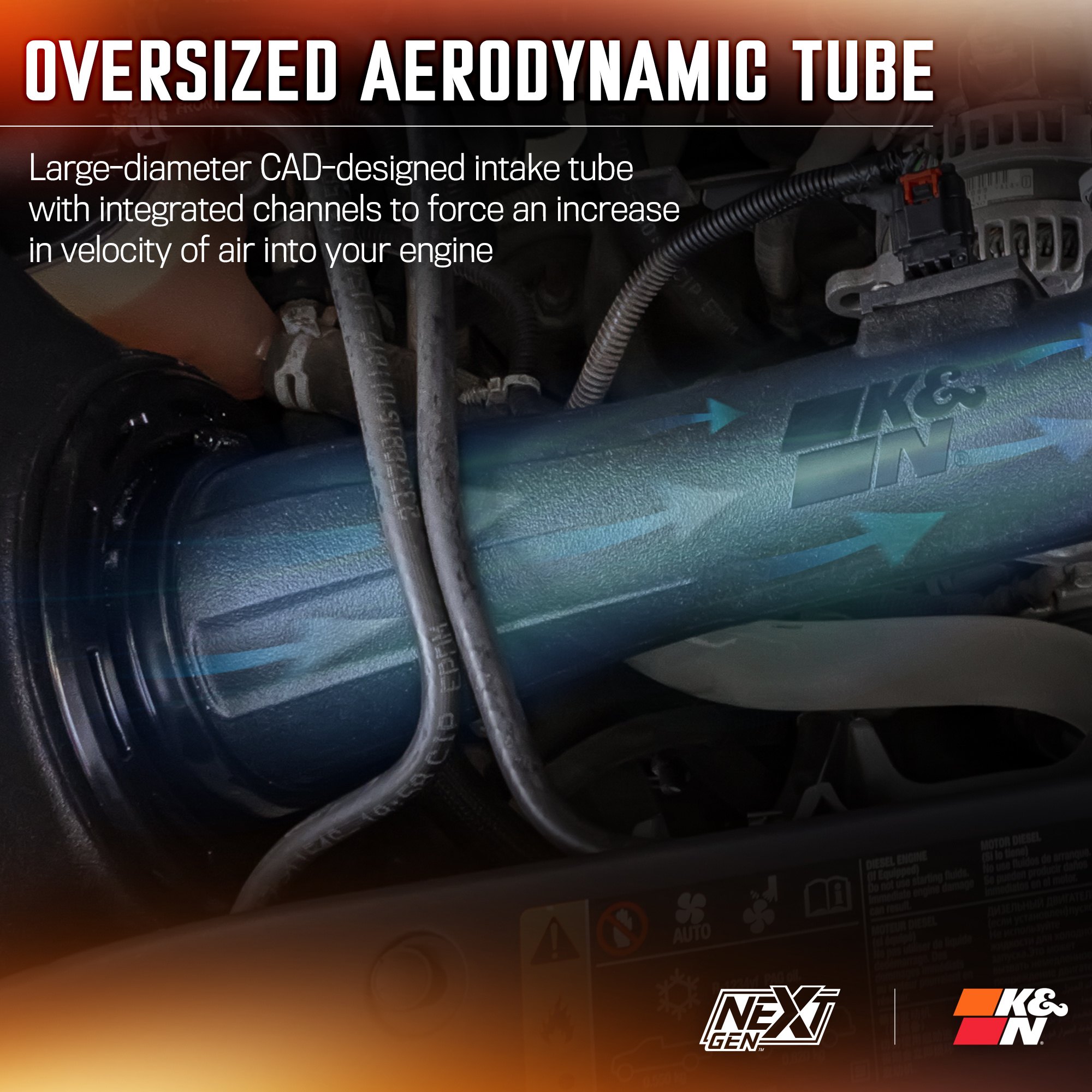 K&N je světovým lídrem ve vývoji sportovních sacích systémů. Každý kit vzniká na základě laserového 3D skenování motorového prostoru, čímž se zajistí dokonalé usazení a optimalizace vedení vzduchu. Pozornost je věnována každému dílu – trubkám, spojkám i sponám – pro snadnou instalaci a bezchybnou funkci celku.