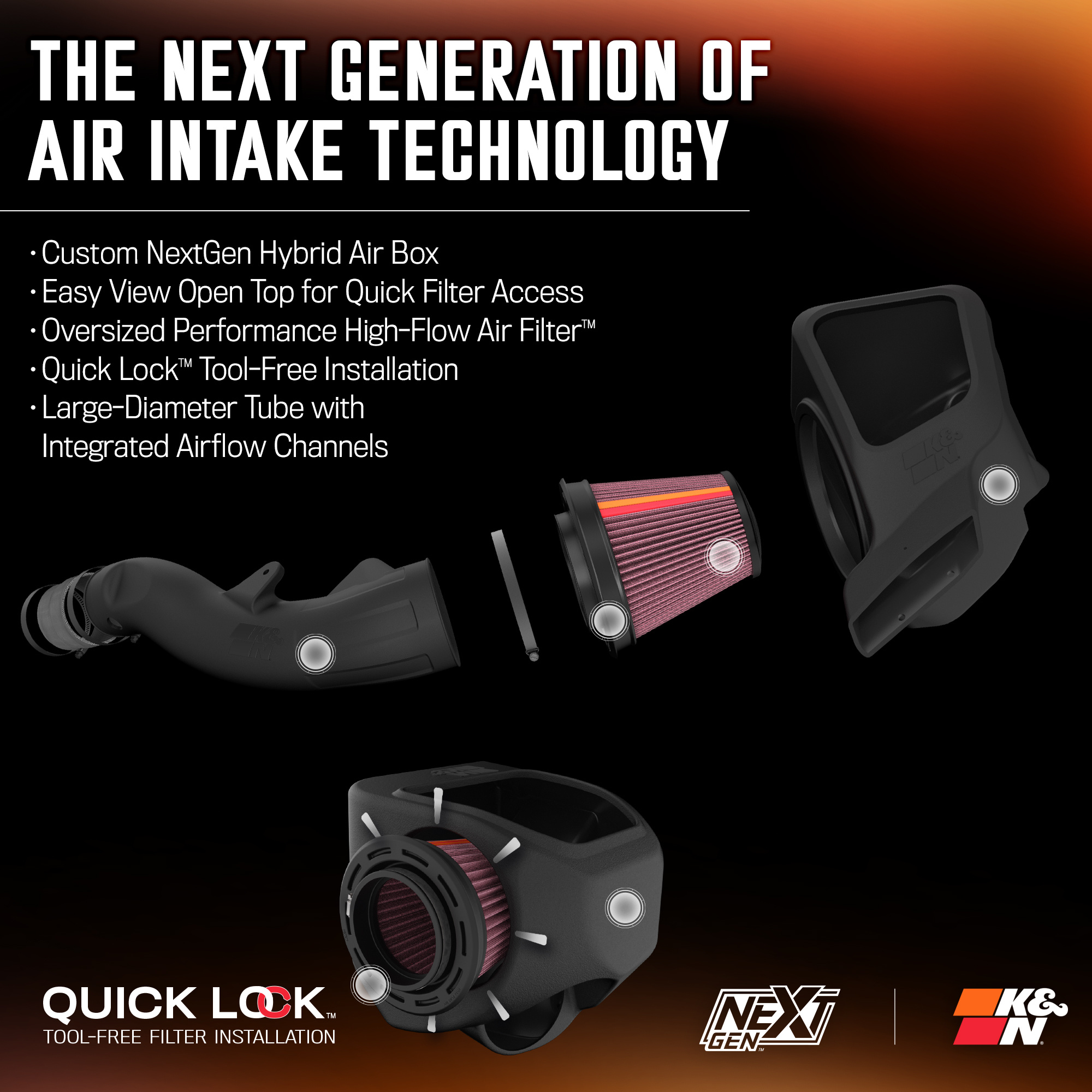 K&N je světovým lídrem ve vývoji sportovních sacích systémů. Každý kit vzniká na základě laserového 3D skenování motorového prostoru, čímž se zajistí dokonalé usazení a optimalizace vedení vzduchu. Pozornost je věnována každému dílu – trubkám, spojkám i sponám – pro snadnou instalaci a bezchybnou funkci celku.