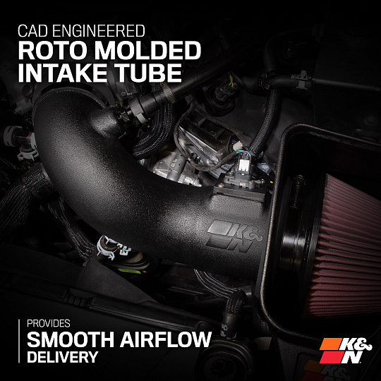 K&N je světovým lídrem ve vývoji sportovních sacích systémů. Každý kit vzniká na základě laserového 3D skenování motorového prostoru, čímž se zajistí dokonalé usazení a optimalizace vedení vzduchu. Pozornost je věnována každému dílu – trubkám, spojkám i sponám – pro snadnou instalaci a bezchybnou funkci celku.