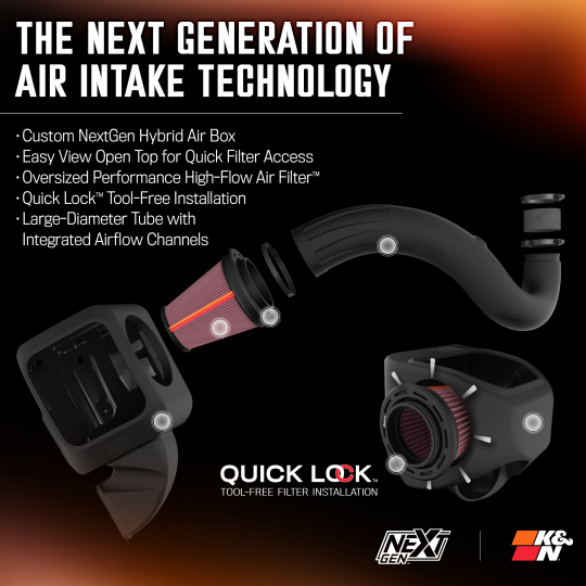 K&N je světovým lídrem ve vývoji sportovních sacích systémů. Každý kit vzniká na základě laserového 3D skenování motorového prostoru, čímž se zajistí dokonalé usazení a optimalizace vedení vzduchu. Pozornost je věnována každému dílu – trubkám, spojkám i sponám – pro snadnou instalaci a bezchybnou funkci celku.