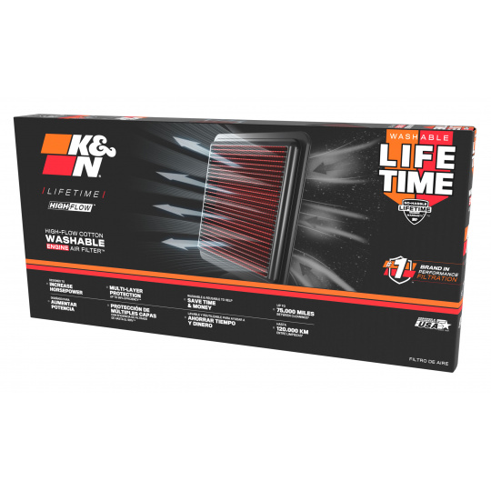 Filtr K&N tvarově přesně odpovídá originálnímu filtru ve voze. Instalace je jednoduchá a zvládne ji každý – stačí nahradit původní papírový filtr.