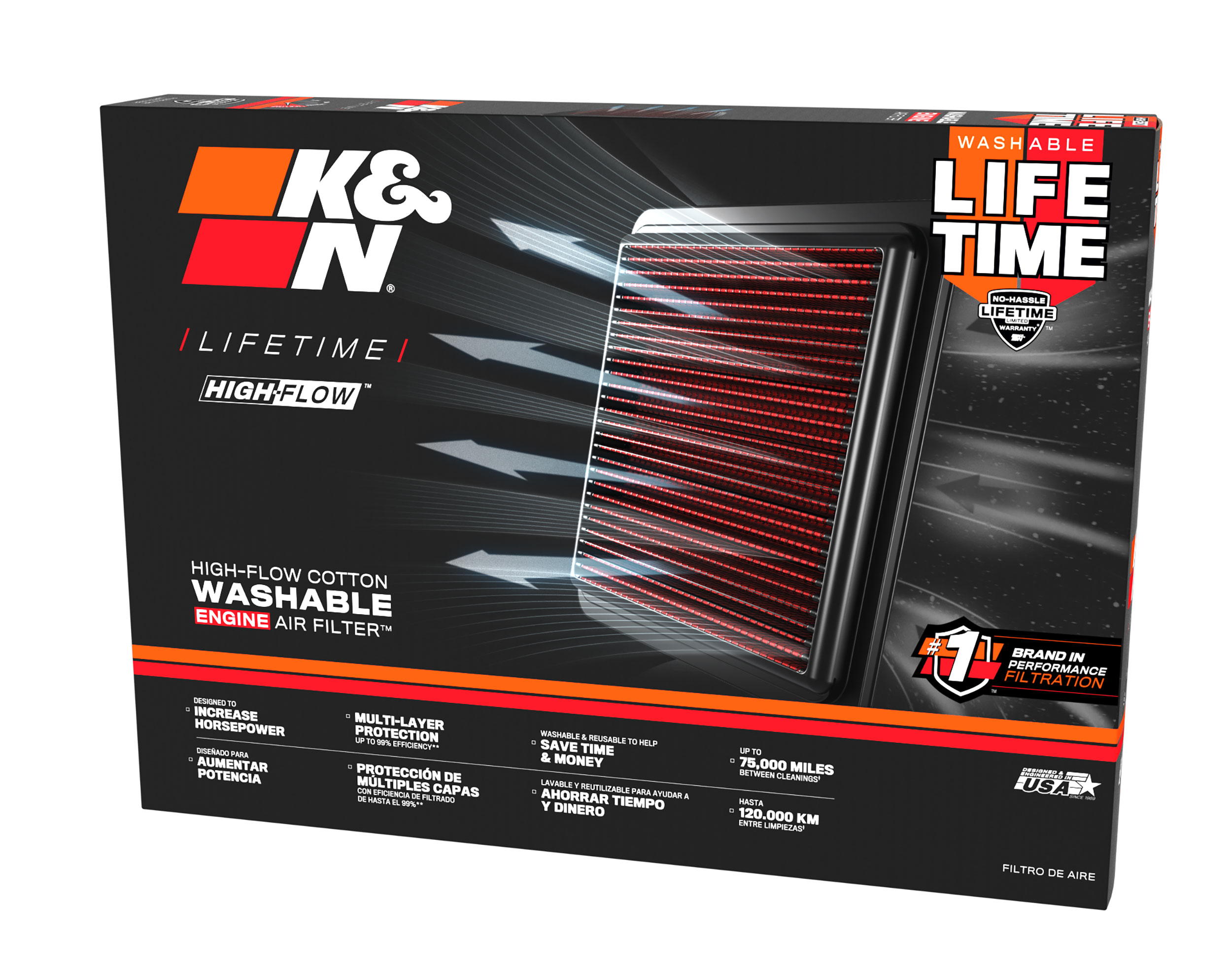 Není překvapením, že vzduchové filtry K&N používají špičkové závodní týmy při závodech jako je Baja 1000, 24 hodin Le Mans, NASCAR nebo dragstery ve sprintech. Ve všech těchto případech se filtry K&N starají o dostatečný přísun čerstvého vzduchu a chrání motor před nečistotami.