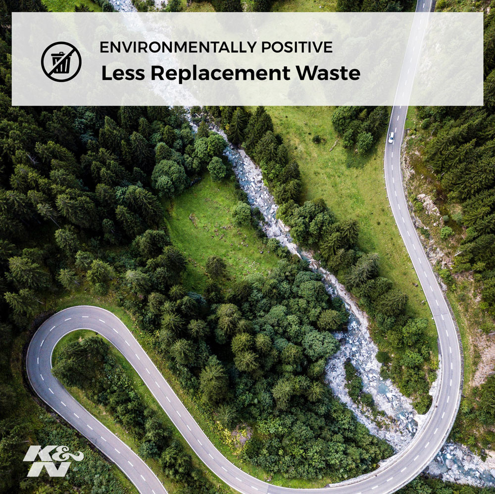 Každý rok skončí na skládkách přes 100 milionů jednorázových papírových filtrů. Filtry K&N jsou omyvatelné a znovupoužitelné – vydrží po celou životnost motocyklu. Pomáhají tak nejen výkonu, ale i životnímu prostředí.