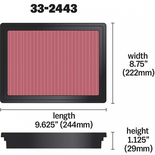 ROZMĚRY A PARAMETRY VLOŽKY FILTRU K&N 33-2443
