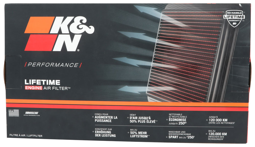 Filtr K&N tvarově přesně odpovídá originálnímu filtru ve voze. Instalace je jednoduchá a zvládne ji každý – stačí nahradit původní papírový filtr.