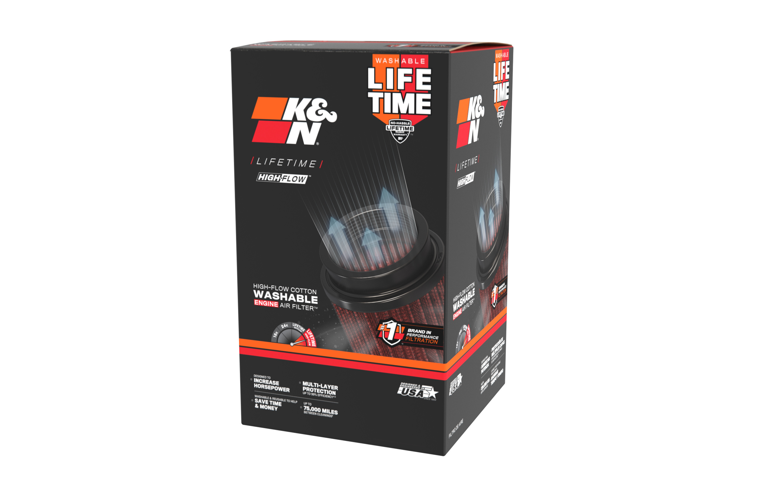 Není překvapením, že vzduchové filtry K&N používají špičkové závodní týmy při závodech jako je Baja 1000, 24 hodin Le Mans, NASCAR nebo dragstery ve sprintech. Ve všech těchto případech se filtry K&N starají o dostatečný přísun čerstvého vzduchu a chrání motor před nečistotami.