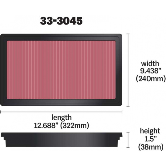 ROZMĚRY A PARAMETRY VLOŽKY FILTRU K&N 33-3045