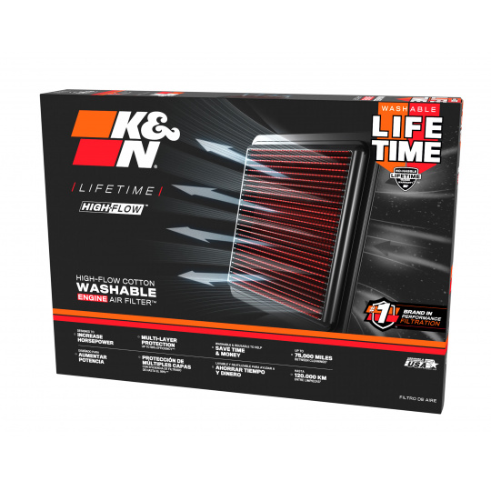 Sportovní filtr K&N má až o 50 % vyšší propustnost vzduchu než běžné papírové filtry. Zlepšený přísun vzduchu vede ke zvýšení výkonu a točivého momentu, přičemž filtr zároveň poskytuje lepší ochranu motoru před nečistotami.
