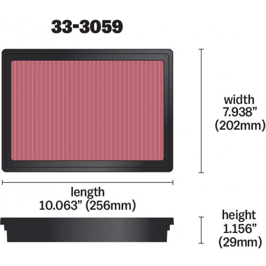 ROZMĚRY A PARAMETRY VLOŽKY FILTRU K&N 33-3059