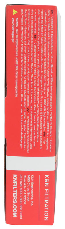 Sportovní filtr K&N má až o 50 % vyšší propustnost vzduchu než běžné papírové filtry. Zlepšený přísun vzduchu vede ke zvýšení výkonu a točivého momentu, přičemž filtr zároveň poskytuje lepší ochranu motoru před nečistotami.