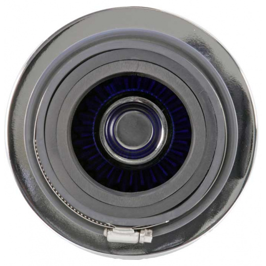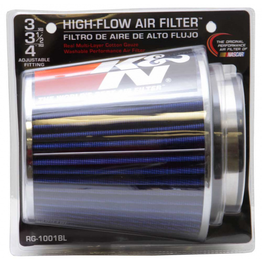K&N univerzální kulatý zkosený filtr se vstupem 102 mm a výškou 140 mm, kovový vrchlík, modrý