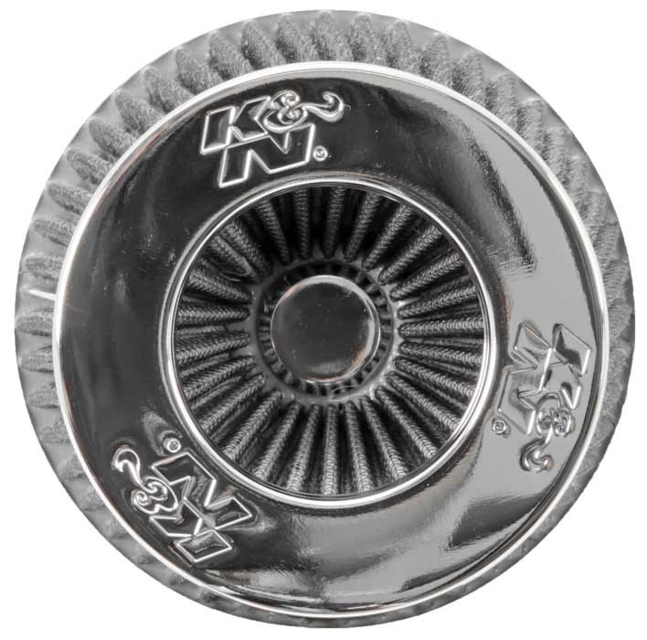 K&N univerzální kulatý zkosený filtr se vstupem 102 mm a výškou 140 mm, kovový vrchlík, šedý