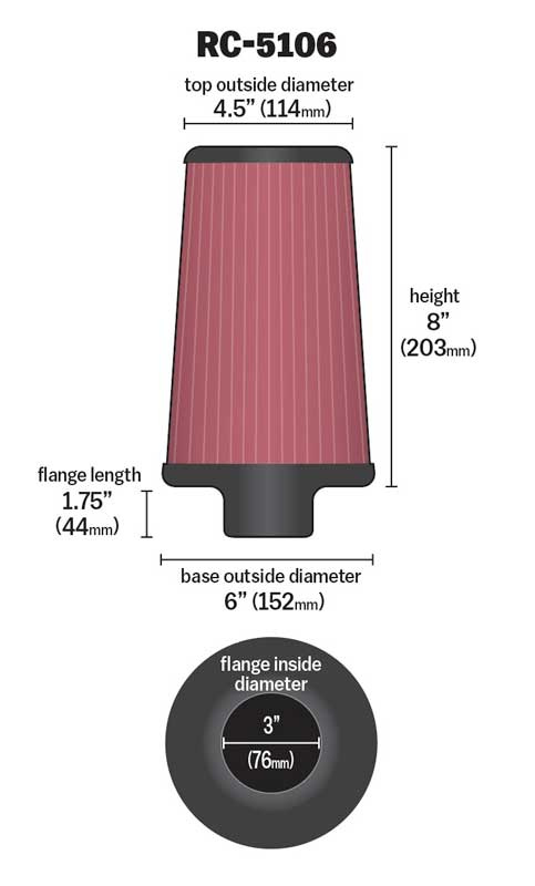 ZÁKLADNÍ ROZMĚRY A PARAMETRY UNIVERZÁLNÍHO FILTRU K&N RC-5106