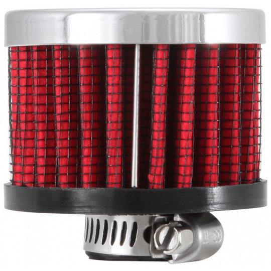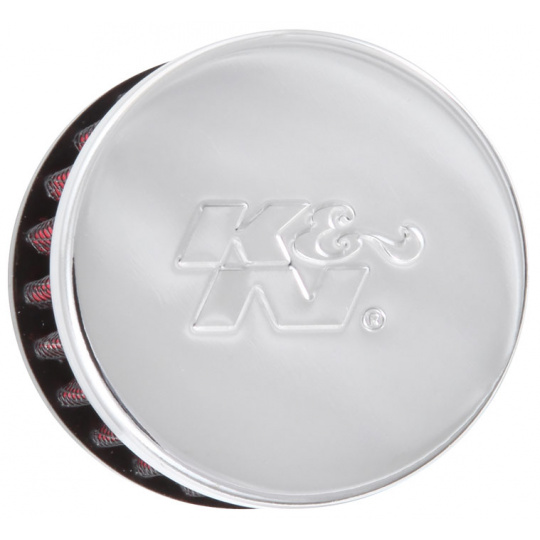 K&N univerzální odvětrávací filtr s vnějším průměrem 51 mm a výškou 38 mm, průměr vstupu 10 mm, délka vstupní příruby 11 mm, materiál Netkaná syntetická textilie, vrchlík kovový vrchlík