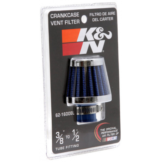 K&N univerzální odvětrávací filtr s vnějším průměrem 51 mm a výškou 44 mm, průměr vstupu 10 mm, délka vstupní příruby 13 mm, materiál Netkaná syntetická textilie, vrchlík kovový vrchlík