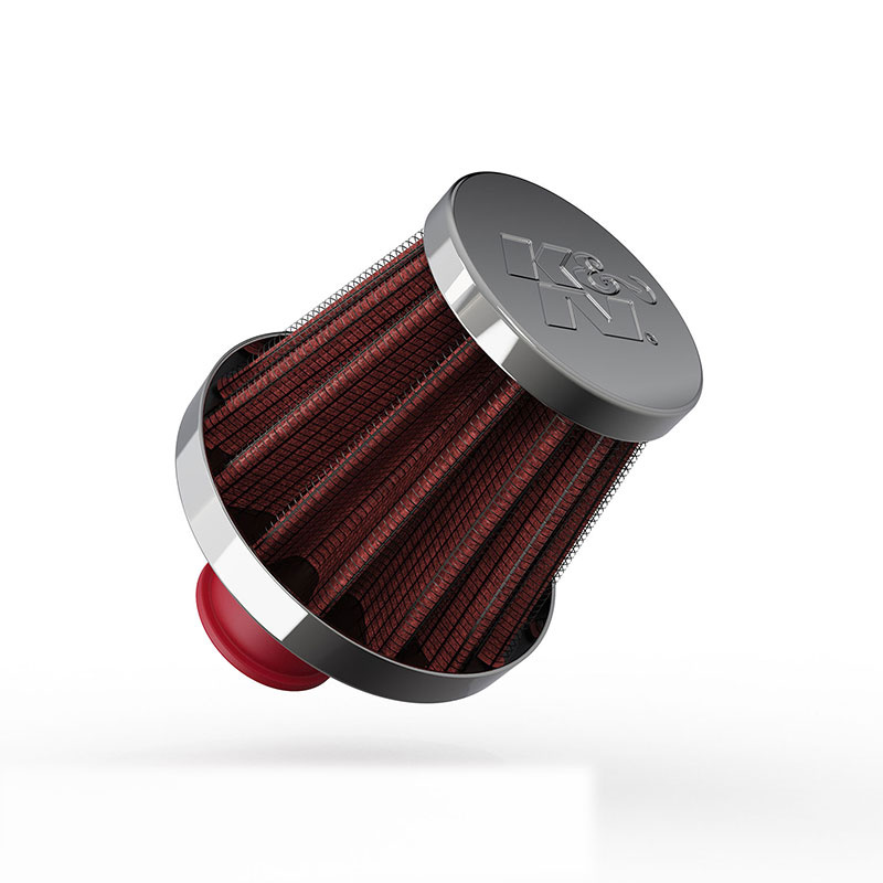 K&N univerzální odvětrávací filtr s vnějším průměrem 51 mm a výškou 44 mm, průměr vstupu 10 mm, délka vstupní příruby 13 mm, materiál Netkaná syntetická textilie, vrchlík kovový vrchlík