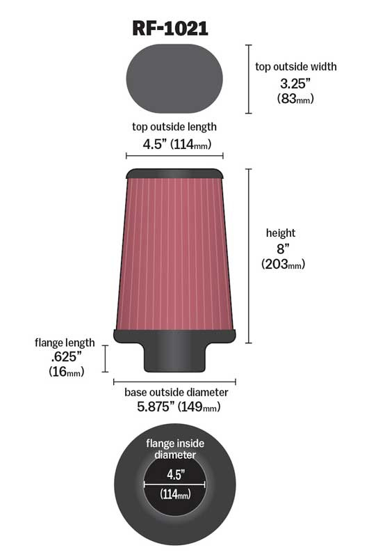 K&N univerzální oválný rovný filtr se vstupem 114 mm a výškou 203 mm, kovový vrchlík