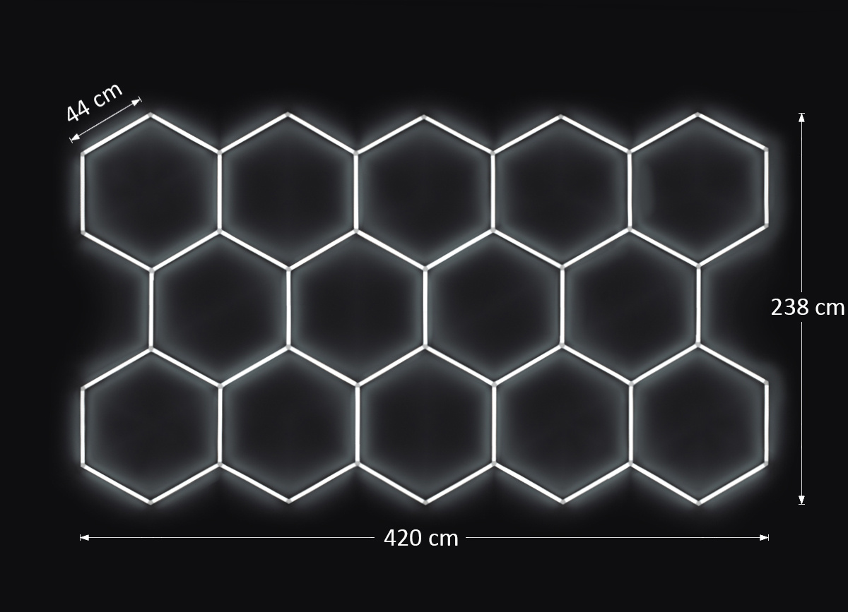 Kompletní LED hexagonové svítidlo bílé 4500 K, rozměr: 14 elementů 420 x 238 cm