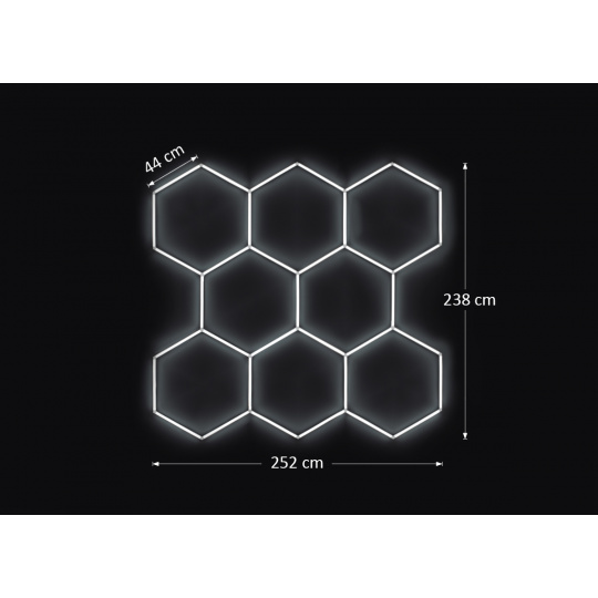 Kompletní LED hexagonové svítidlo bílé 4500 K, rozměr: 8 elementů 252 x 238 cm