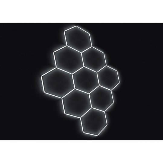 Kompletní LED hexagonové svítidlo bílé 4500 K, rozměr: 9 elementů 246 x 386 cm