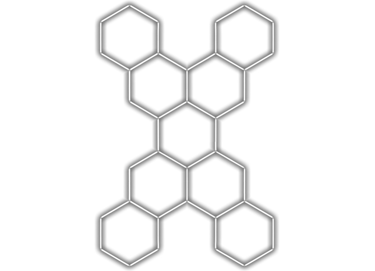 Kompletní LED hexagonové svítidlo bílé 4500 K, rozměr: 9 elementů 246 x 386 cm tvar X