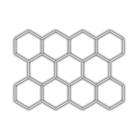 Kompletní LED hexagonové svítidlo bílé 6500 K, rozměr: 11 elementů 336 x 238 cm