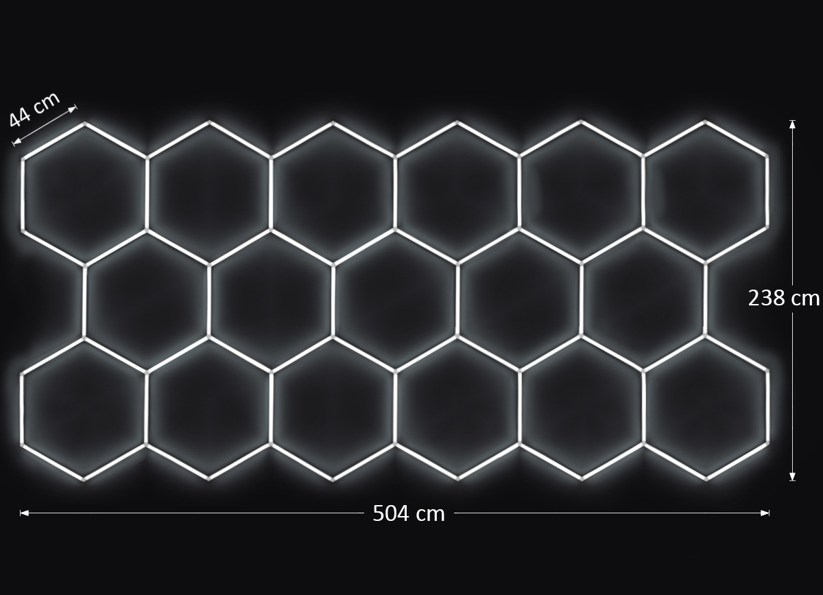 Kompletní LED hexagonové svítidlo bílé 6500 K, rozměr: 17 elementů 504 x 238 cm