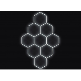 Kompletní LED hexagonové svítidlo bílé 6500 K, rozměr: 9 elementů 246 x 386 cm
