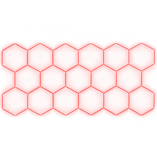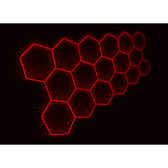 Kompletní LED hexagonové svítidlo červené, rozměr: 17 elementů 504 x 238 cm