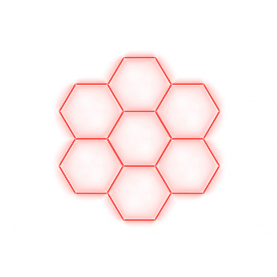 Kompletní LED hexagonové svítidlo červené, rozměr: 7 elementů 238 x 252 cm