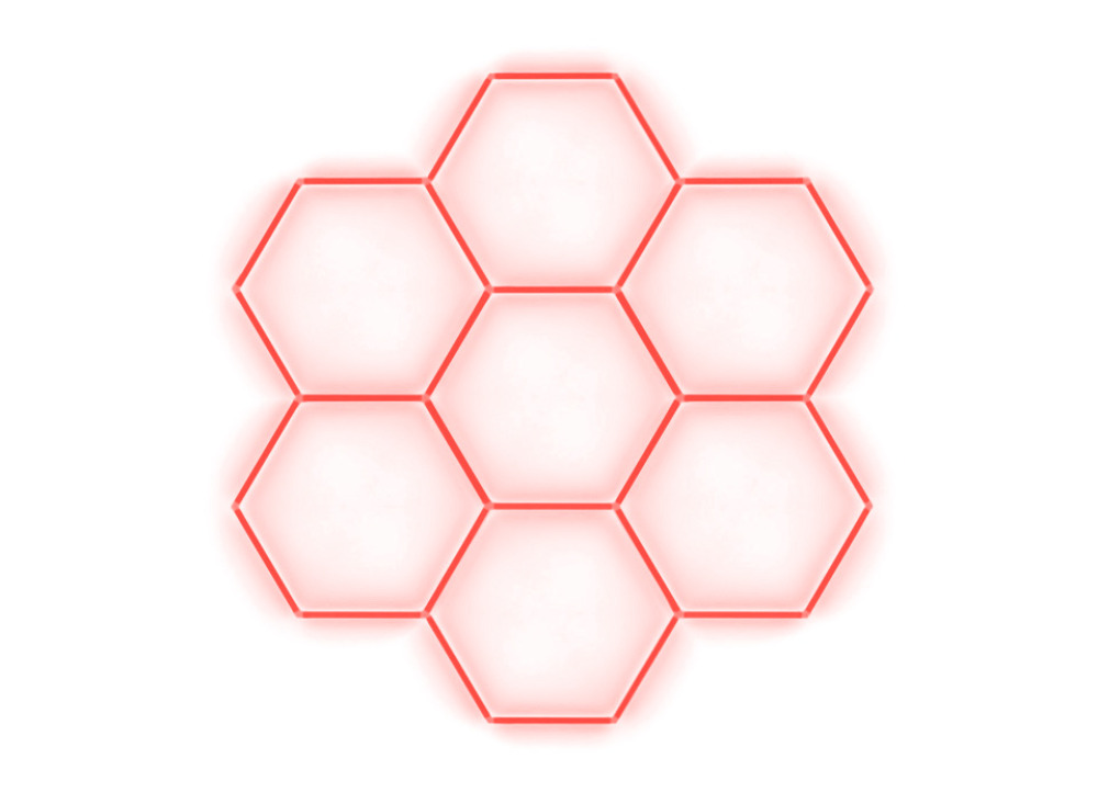Kompletní LED hexagonové svítidlo červené, rozměr: 7 elementů 238 x 252 cm