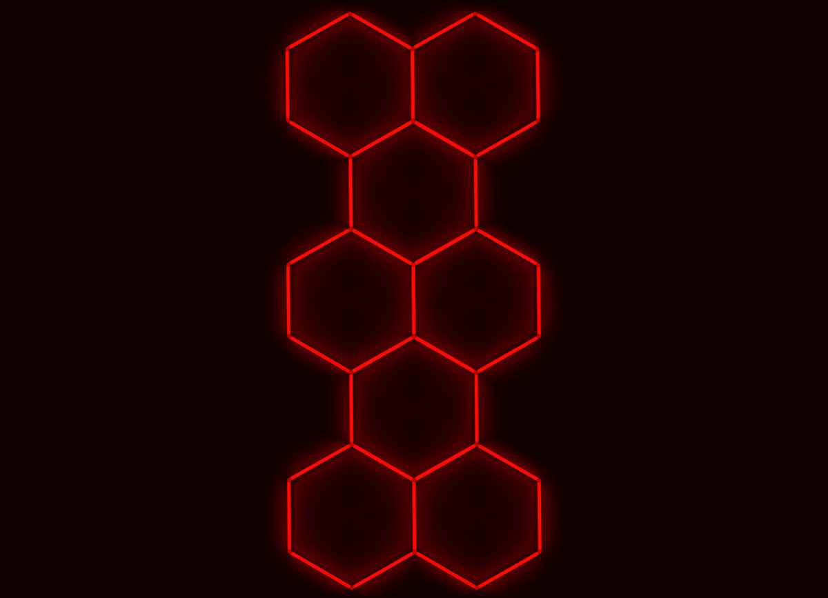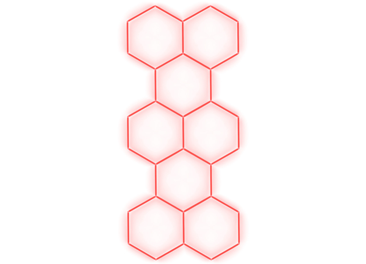 Kompletní LED hexagonové svítidlo červené, rozměr: 8 elementů 166 x 386 cm