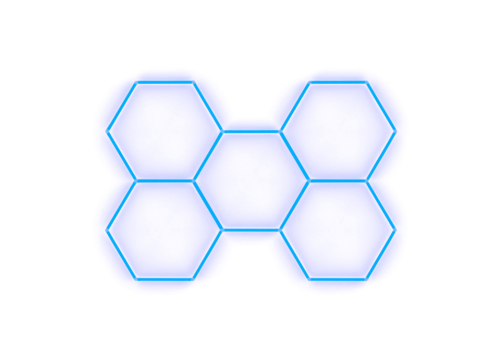 Kompletní LED hexagonové svítidlo modré, rozměr: 5 elementů 238 x 168 cm