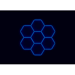 Kompletní LED hexagonové svítidlo modré, rozměr: 7 elementů 238 x 252 cm