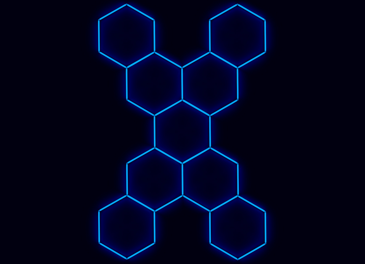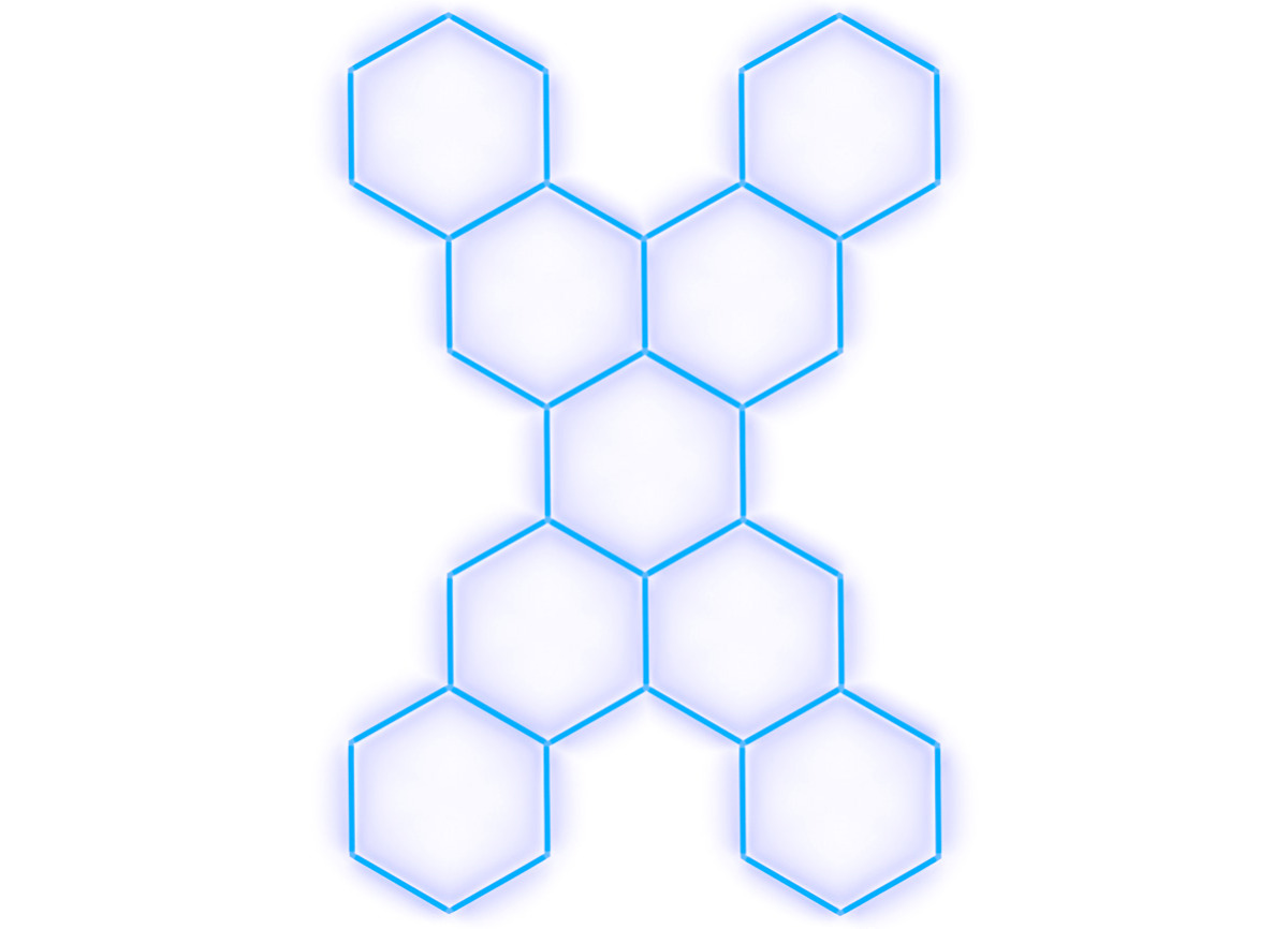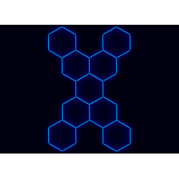 Kompletní LED hexagonové svítidlo modré, rozměr: 9 elementů 246 x 386 cm tvar X